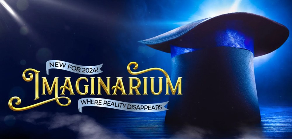 The first show is the Imaginarium magic show. It runs from March 9th through November 2nd, 2024. It features a circus theme mixed with Wonka, Hollywood glamour, and a steampunk influence.