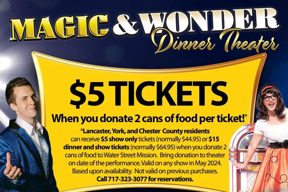 Where: Magic & Wonder Dinner Theater, located at 3065 Lincoln Hwy E, Paradise, PA.