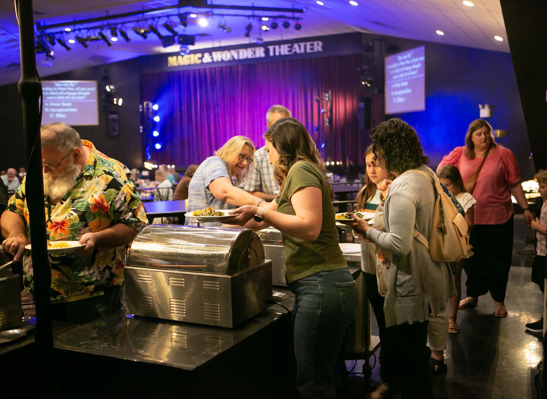 Grand Opening Salad Bar – crisp garden greens, colorful toppings, and house dressings for a fresh start to the show